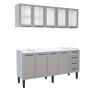 Cozinha Completa Gabinete Para Pia 180 e Armário Aéreo Porta Vidro Juno/Apolo 4 Gavetas Cozimax Cinza Argila