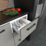 Cozinha Completa Juno é formada pelo Gabinete para pia e Armário Aéreo, ela é ideal para você que procura qualidade, modernidade e sofisticação para sua cozinha. Possui puxadores em aço na cor preto, seus pés tem 21cm com regulagem de altura, parte interna das gavetas em polipropileno virgem, mais resistente a impacto e ressecamento. As portas, base, laterais, frente de gavetas e prateleiras são tudo 100% aço galvanizado com pintura Eletrostática, garantindo maior qualidade e durabilidade ao produto. Ah!! Possui garantia de 5 anos no aço.