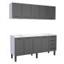 Cozinha Completa Juno é formada pelo Gabinete para pia e Armário Aéreo, ela é ideal para você que procura qualidade, modernidade e sofisticação para sua cozinha. Possui puxadores em aço na cor preto, seus pés tem 21cm com regulagem de altura, parte interna das gavetas em polipropileno virgem, mais resistente a impacto e ressecamento. As portas, base, laterais, frente de gavetas e prateleiras são tudo 100% aço galvanizado com pintura Eletrostática, garantindo maior qualidade e durabilidade ao produto. Ah!! Possui garantia de 5 anos no aço.