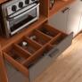 Composta por 12 portas e 3 gavetas com corrediças telescópicas – sendo uma com separador de talheres –, a Cozinha Pulse oferece espaço para forno e micro-ondas, além de puxadores em ABS, tampos e base em MDP 25mm e estrutura 100% em MDP, garantindo resistência e durabilidade.