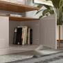 Um dos grandes diferenciais da Estante Home Alabama, são os rodízios embutidos, facilitando muito na hora da limpeza. Na parte superior além do painel com espaço para TV até 55 polegadas, temos também 1 nicho para colocar objetos de decoração. Na parte inferior do Home Alabama temos 2 portas articuladas, além de espaços para colocar objetos de decoração e aparelhos diversos.