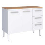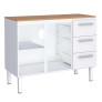 Sua estrutura é 100% em aço galvanizado — incluindo portas, base, laterais, frente de gavetas e prateleiras — com pintura eletrostática, o que assegura maior durabilidade, resistência à umidade e facilidade na limpeza. Os puxadores em ABS e os pés com 21 cm de altura e regulagem reforçam a praticidade e a robustez do móvel.