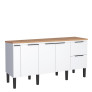 Fabricado em MDP de alta qualidade, o balcão Cisne conta com porta-condimentos em aço, prateleira interna e divisões inteligentes que facilitam a organização de utensílios e mantimentos. As gavetas com corrediças telescópicas garantem abertura total e suavidade no uso, enquanto os puxadores em aço galvanizado reforçam o visual minimalista e sofisticado do móvel.