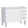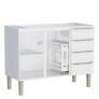 A linha de Gabinete de aço para cozinha Flora, da Cozimax, oferece amplo espaço interno e porta condimentos em aço. Conta com prateleiras internas, pés exclusivos com regulagem, além de gavetas com divisor de talheres em PP virgem, proporcionando maior resistência a impactos e ressecamento.
