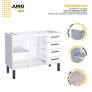 Gabinete para pia Cozinha Juno é ideal para você que procura qualidade, modernidade e sofisticação para sua cozinha. Possui puxadores em aço na cor preto, seus pés tem 21cm com regulagem de altura, parte interna das gavetas em polipropileno virgem, mais resistente a impacto e ressecamento. As portas, base, laterais, frente de gavetas e prateleiras são tudo 100% aço galvanizado com pintura Eletrostática, garantindo maior qualidade e durabilidade ao produto. Ah!! Possui garantia de 5 anos no aço.