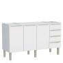 A linha de Gabinete de aço para cozinha Flora, da Cozimax, oferece amplo espaço interno e porta condimentos em aço. Conta com prateleiras internas, pés exclusivos com regulagem, além de gavetas com divisor de talheres em PP virgem, proporcionando maior resistência a impactos e ressecamento.