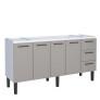 Gabinete Juno 180 para pia de 1.80m de inox ou pedra, é ideal para você que procura qualidade, modernidade e funcionalidade para sua cozinha. O gabinete possui puxadores, pés com 21cm de altura com regulagem de altura, gavetas em Polipropileno virgem, mas resistente a impacto e ressecamento, gavetas mais profundas, maior espaço interno 14cm. Portas, base, laterais, frente de gavetas, prateleiras tudo 100% aço galvanizado com pintura Eletrostática, garantindo maior qualidade e durabilidade ao produto. Ah!! Possui garantia de 5 anos. O que mais você precisa saber para comprar esse gabinete?