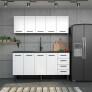 Gabinete para pia Cozinha Juno é ideal para você que procura qualidade, modernidade e sofisticação para sua cozinha. Possui puxadores em aço na cor preto, seus pés tem 21cm com regulagem de altura, parte interna das gavetas em polipropileno virgem, mais resistente a impacto e ressecamento. As portas, base, laterais, frente de gavetas e prateleiras são tudo 100% aço galvanizado com pintura Eletrostática, garantindo maior qualidade e durabilidade ao produto. Ah!! Possui garantia de 5 anos no aço.