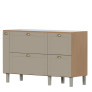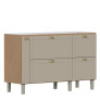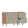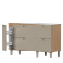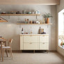 Os pés em poliestireno com regulagem de altura garantem estabilidade e fácil adaptação ao piso, enquanto a abertura basculante com pistão a gás reforça a modernidade e o conforto no manuseio. O Gabinete Grou é ideal para cozinhas que exigem espaço, organização e um visual elegante.