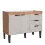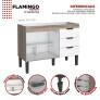 A cozinha em Madeira Flamingo apresenta combinações de cores perfeitas. O Gabinete Flamingo possui gavetas com corrediças telescópicas, exclusivos puxadores em aço eletrogalvanizado da Cozimax, e pés com regulagem de altura em polipropileno virgem na cor preta, que não ressecam