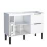 A linha de armários para cozinha Cisne, da Cozimax, é elegante e sofisticada, fabricada com chapas de madeira com acabamento fosco, possui porta condimentos em aço, prateleira e divisão interna para organizar utensílios, duas gavetas com puxadores exclusivos em estilo minimalista e uma gaveta embutida, dobradiças com amortecimento e pés na cor preta com regulagem de altura.
