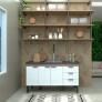 A cozinha em Madeira Flamingo apresenta combinações de cores perfeitas. O Gabinete Flamingo possui gavetas com corrediças telescópicas, exclusivos puxadores em aço eletrogalvanizado da Cozimax, e pés com regulagem de altura em polipropileno virgem na cor preta, que não ressecam