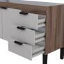 A cozinha em Madeira Flamingo apresenta combinações de cores perfeitas. O Gabinete Flamingo possui gavetas com corrediças telescópicas, exclusivos puxadores em aço eletrogalvanizado da Cozimax, e pés com regulagem de altura em polipropileno virgem na cor preta, que não ressecam