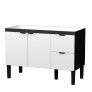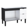 O modelo conta com 2 gavetões com corrediças telescópicas, puxadores exclusivos em estilo minimalista e pés na cor preta com regulagem de altura, garantindo praticidade no uso diário e facilidade na instalação.
