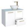 Elegância e resistência para os clientes mais exigentes, o banheiro em aço Jambo é bem completo e possui tampo de vidro temperado, dobradiças com fechamento suave, puxadores em alumínio maciço e abertura total das gavetas com corrediças telescópicas. Disponível nas cores preto e branco e feito com aço diferentaço, o Jambo possui 5 anos de garantia de fábrica.