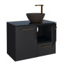Gabinete Para Banheiro Aço 77x56x45cm Com Cuba Louça Cuia Preta Jambo 80 Cozimax Preto