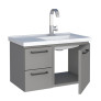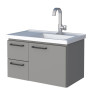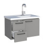 O gabinete conta com lavatório em mármore sintético com linhas retas e bordas sobrepostas, além de espaço interno funcional para organizar produtos de higiene e limpeza. Suas gavetas em polipropileno virgem não ressecam, não quebram e garantem maior resistência ao uso diário. Os puxadores em ABS com acabamento metalizado completam o visual moderno do móvel.