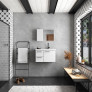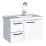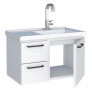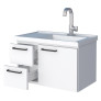 O gabinete conta com lavatório em mármore sintético com linhas retas e bordas sobrepostas, além de espaço interno funcional para organizar produtos de higiene e limpeza. Suas gavetas em polipropileno virgem não ressecam, não quebram e garantem maior resistência ao uso diário. Os puxadores em ABS com acabamento metalizado completam o visual moderno do móvel.