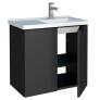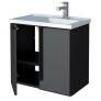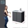 2 portas 100% aço (fosca) 1 Prateleira interna Puxadores em aço Lavatório em mármore sintético Dobradiças com amortecimento 5 anos de garantia Design moderno. Foto gabinete aberto ilustrativa apenas para verificar interno do produtoDimensões do Gabinete Umbu Montado