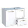Com duas portas, uma gaveta espaçosa e prateleira interna, o gabinete oferece excelente espaço para guardar produtos de higiene, toalhas e itens essenciais do banheiro, mantendo tudo organizado e fácil de acessar.