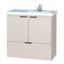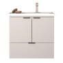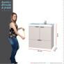 2 Portas articuladas 1 Gaveta com corrediças telescópicas Dobradiças com amortecimento Puxadores em aço Lavatório em mármore sintético com borda sobreposta