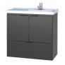 2 Portas articuladas 1 Gaveta com corrediças telescópicas Dobradiças com amortecimento Puxadores em aço Lavatório em mármore sintético com borda sobreposta