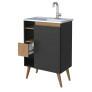 Gabinete Para Banheiro Madeira Lotus 60 Com Pés Cozimax Jequitiba/Preto