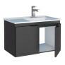 2 Portas articuladas Dobradiças com amortecimento Puxadores em aço Lavatório em mármore sintético