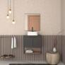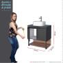 2 Portas articuladas Dobradiças com amortecimento Puxadores em aço Nicho inferior Cuba em mármore sintéticoDimensões Gabinete Sálvia Montado