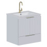 Além disso, o lavatório de louça proporciona acabamento sofisticado e fácil limpeza, tornando o conjunto ideal para o uso diário.