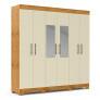 Guarda Roupa 6 Portas Com Espelho 3 Gavetas 200cm Madri Gelius Madeirado/Off White