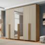 Guarda Roupa Casal 263cm 6 Portas Com Espelho Amsterdã RV Móveis Cinamomo/Off White