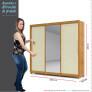Guarda Roupa Grande Casal 3 Portas Correr 1 Porta de Espelho e Pés 228x226 Royale Gelius Naturale/Off White