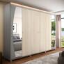 Guarda Roupa Casal Grande 273x242x64 Com Espelho e Pés Inovação Gelius Cinza/Ipê