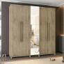Guarda Roupa Munique com certeza vai organizar todo seu quarto. Possui 5 portas de abrir, sendo a porta central de espelho. Possui um amplo espaço interno com acabamento da mesma cor do produto. 2 Maleiros na parte superior para guardar objetos e peças maiores como malas, edredons, cobertas. 02 cabideiros em alumínio para organizar suas roupas, 01 porta calceiro em alumínio, 02 porta cinto/gravata. Na porta central temos uma sapateira com 07 prateleiras. Ah! possui também 03 gavetas com corrediças telescópicas que proporcionam abertura total da gaveta e são mais silenciosas e macias e 08 pés de madeira maciça.