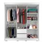 2 gavetas internas com corrediças metálicas; 2 tubos cabideiros para maior comodidade; Amplo espaço para camisas; Linda moldura, design exclusivo; Pés incluso; Portas reversíveis, possibilita até 4 montagens; Prateleiras organizadoras; Profundidade de 49cm; Puxadores linear na cor champanhe;