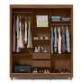 O Roupeiro Max se destaca pela praticidade das três portas de correr, que contribuem para a otimização de espaço, contando com um amplo espaço interno, onde sua estrutura é formada por duas gavetas, cinco prateleiras e espaço para vestidos e calças. O roupeiro Max conta também com porta central de espelho trazendo mais sofisticação ao produto. O roupeiro Max agrada pelo seu design compacto e arrojado.