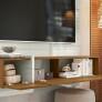 Painel Dali possui espaço para TV até 55 Polegadas, prateleira e 2 portas basculantes. É construído com materiais duráveis e de alta qualidade, garantindo resistência ao longo do tempo. Sua estrutura robusta e acabamento impecável asseguram um móvel duradouro que adiciona charme ao seu espaço..