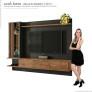 Portas basculantes com articulador Base, tampo e prateleira em MDF 25 mm Prateleira de vidro Espelho Detalhes amadeirados Espaço para TV de 55”