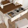 A JB Bechara pensou e criou a Penteadeira Baby JB 7200 para que a mulher tenha um espaço só para ela, para se arrumar e se transformar numa verdadeira dama. Agora o camarim pode ficar bem no seu quarto! Com esse móvel você pode se embelezar a vontade, possui 1 gaveta e espaços suficientes para guardar e organizar suas maquiagens, perfumes, cremes e muito mais. Conta também, com um amplo espelho no design de estrela, ótimo para te ajudar na hora de se maquiar e até mesmo se admirar. Possui 75 cm de largura tem espaço para dispor alguns objetos decorativos para deixar o ambiente com a sua cara. Ah! Acompanha banqueta, ok? ;)