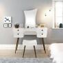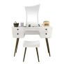 Penteadeira com Banqueta Channel, possui design retrô que vai deixar o ambiente lindo, tem 4 gavetas com corrediças metálicas para guardar suas maquiagens e objetos variados. Pés de madeira com reforço e espelho central. O que você esta esperando para levar agora sua Penteadeira Channel?