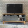 Bancada compacta Tauros com Pés em MDF de 25mm, tampo em MDP de 25mm e 2 portas com amplo espaço interno. Rack Tauros é idela para pequenos ambientes como apartamentos. Espaço para TV até 50 Polegadas.