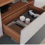 O painel comporta TVs de até 70 polegadas e conta com prateleira superior em MDP 25mm com iluminação em LED, que traz charme e elegância à decoração. Já o rack possui tampo em MDP 25mm, puxadores em ABS, gaveta com corrediças telescópicas e espaço central para eletrônicos, além de pés em madeira maciça que garantem estabilidade e um visual encantador.