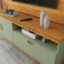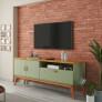 Com 136 cm de largura e espaço ideal para TVs de até 55 polegadas, o Rack Sirius possui puxadores de couro que trazem um toque de requinte e pés em madeira maciça com sapatas protetoras, garantindo resistência e estabilidade. Além disso, conta com duas portas, sendo uma de abrir e outra basculante com dobradiças metálicas, que proporcionam maior praticidade no uso.