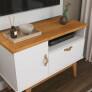 Com 90 cm de largura e espaço ideal para TVs de até 32 polegadas, o Rack Sirius possui puxadores de couro que trazem um toque de requinte e pés em madeira maciça com sapatas protetoras, garantindo resistência e estabilidade. Além disso, conta com duas portas, sendo uma de abrir e outra basculante com dobradiças metálicas, que proporcionam maior praticidade no uso.