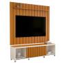Rack Com Painel Ripado 180cm Para TV 75 Polegadas Brise 1.8 EDN Off White/Cedro