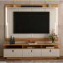 A bancada Marrcos e painel Lion é uma escolha elegante e versátil para a compor sua sala de estar, com seu design contemporâneo e funcional. Facilita a organização do seu ambiente, além de deixá-lo de cara nova. Produzido em em MDP e MDF, acomoda TVs de até 75 polegadas. No painel existem chanfros usinados, com iluminação LED nas laterais, que dá um toque de sofisticação a mais no seu produto. No Rack Marrocos, contamos com 3 portas basculantes, sendo as frentes com puxadores em couro, você tem bastante espaço para guardar tudo o que precisar de forma organizada e simples.
