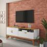 Com 136 cm de largura e espaço ideal para TVs de até 32 polegadas, o Rack Sirius é produzido com materiais de alta qualidade. Seu charme fica por conta dos puxadores de couro, que trazem um toque sofisticado, e dos pés em madeira maciça com sapatas protetoras, que garantem resistência e estabilidade.