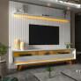 Rack Requinte Pés Madeira com Painel Ripado Nobre 230cm LED TV 85 Polegadas Gelius Branco