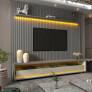 O Conjunto Painel Nobre Ripado + Rack Requinte, chega para agregar beleza e elegância ao seu ambiente. Um combo funcional e moderno que harmoniza facilmente com diversas decorações, o painel dispõe de ripas autênticas 100% MDF e uma linda prateleira chanfrada com bordas laqueadas, que pode ser montada tanto na parte inferior quanto na parte superior do produto. Já o rack com rodízios de silicone, divisórias em vidro de 8mm e gavetas com bordas chanfradas laqueadas e corrediças telescópicas. O conjunto possui led em luz quente com difusor já inclusos.